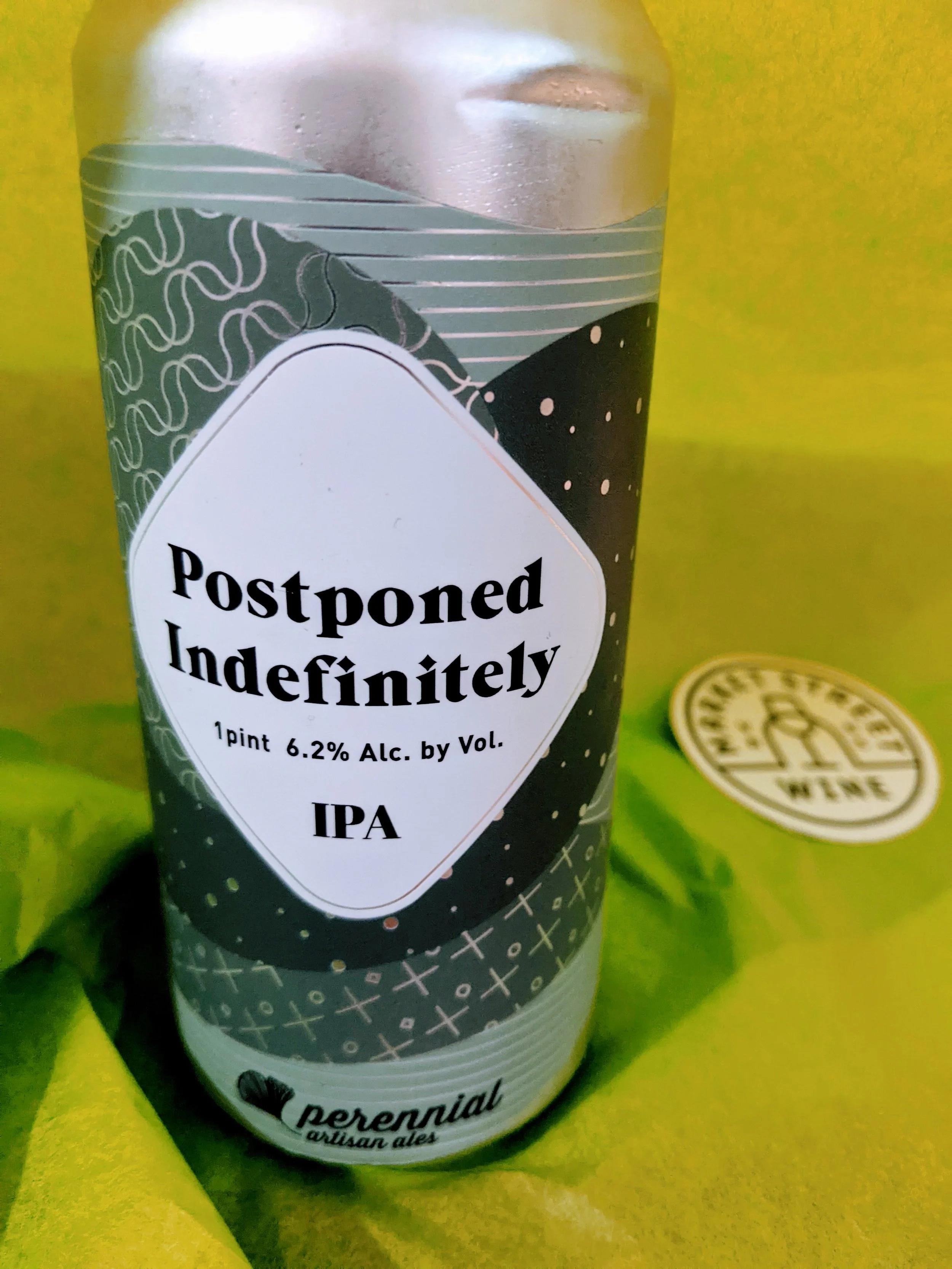 The Postponed Indefinitely is part of a series of IPAs that Perennial calls “hazy-ish” — taking inspiration from both West Coast and East Coast styles. Its malt bill consists of Pilsner and 2-Row barley malt with malted spelt (an heirloom wheat strain). (They also throw in some flaked barley.) This bill turns out a light backbone creating a delicate IPA. The malt and hops form lemony citrus flavors with mint notes providing the Perennial fan with a drinking adventure that isn’t just in the mind.