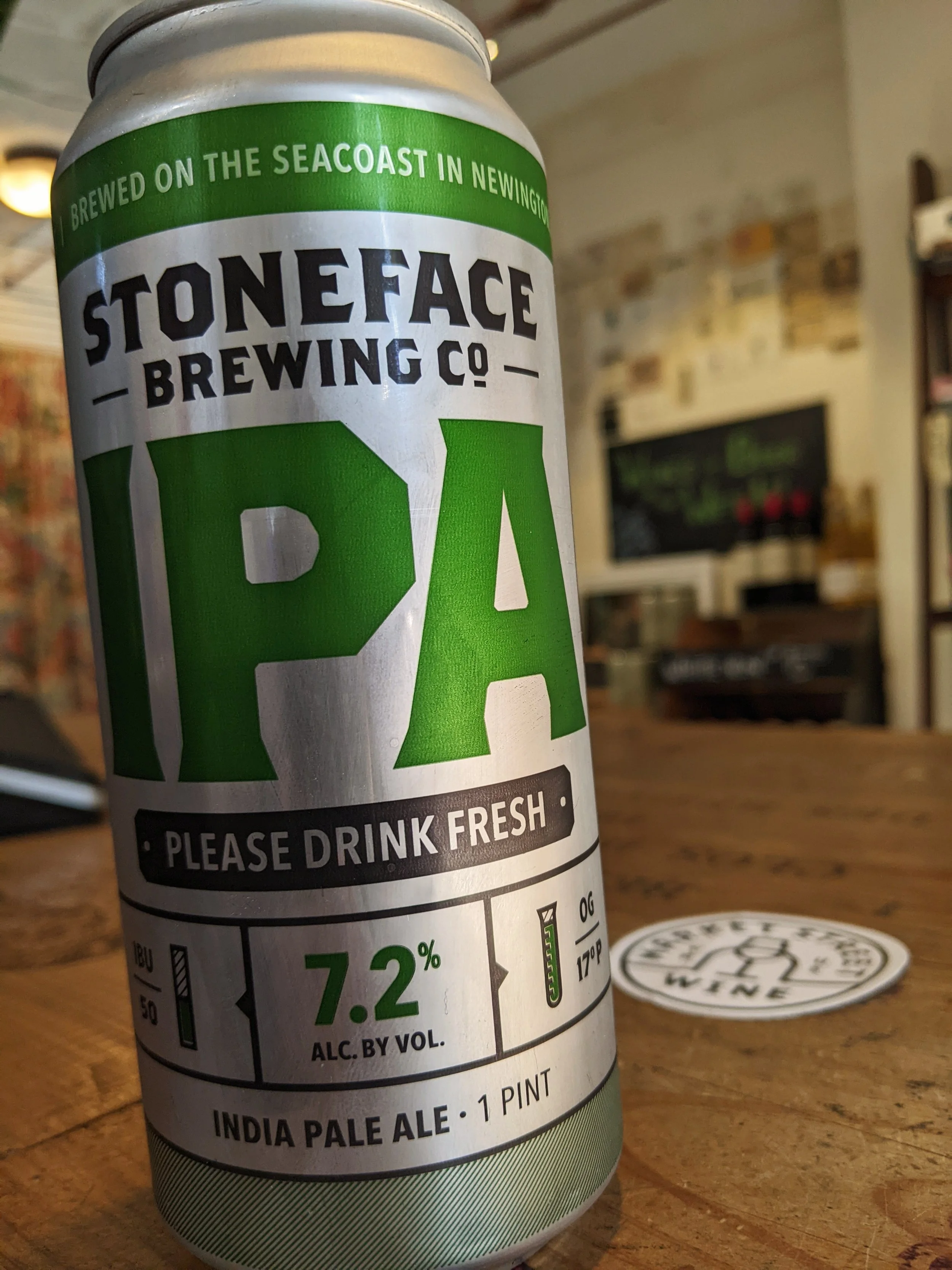 Actually, Stoneface sits on the northeast outskirts of Newington, which is, itself, just north of Portsmouth. The brewery is on the bank of the Pistaqua River, running between New Hampshire and Maine, before it empties into the Atlantic. So their slogan, “Brewed on the seacost in Newington, NH” is accurate even though they look out to Eliot, ME and not to the ocean.
