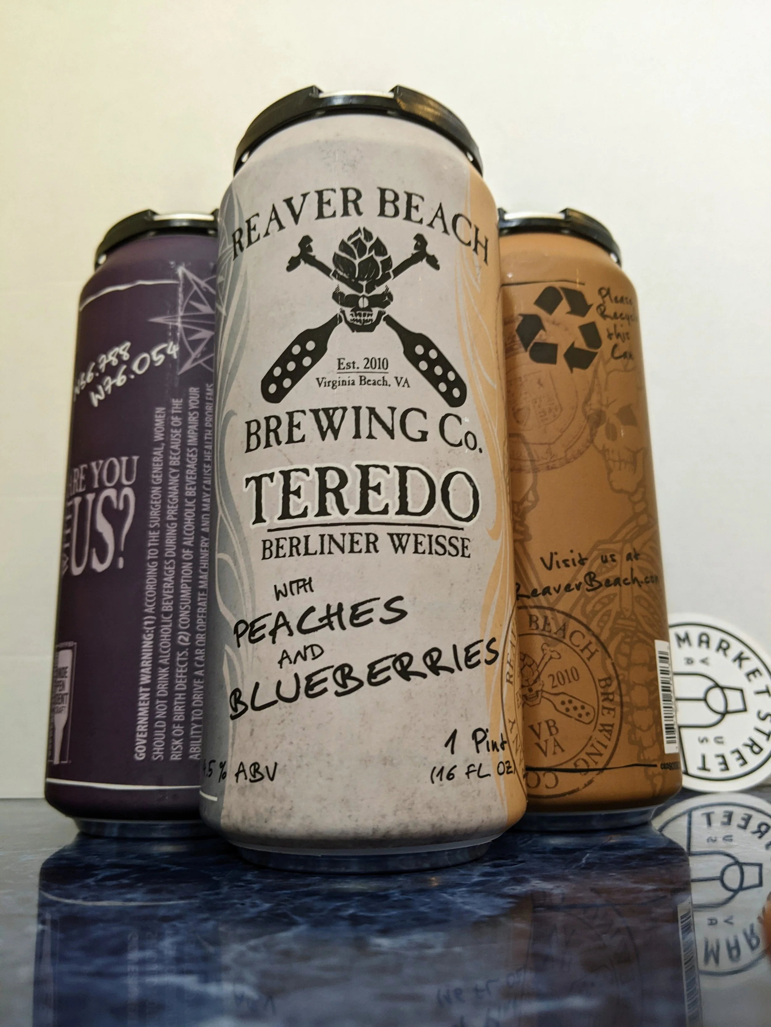 Originating in northern Germany, Berliner Weisse beers are wheat ales — usually unfiltered — that are soured with lactobacillus bacteria. Drinkers would then flavor these beers with syrups like Woodruff or raspberry. Today, American brewers make Berliner Weisse style beers with a variety of fruits in them, which is how we get to Reaver Beach’s Teredo series. A teredo is a mollusk with a healthy appetite for wood, but the Teredos are Berliner Weisse beers with a different duo of fruit in each iteration. Blend #3, this latest one, contains Peaches and Blueberries.