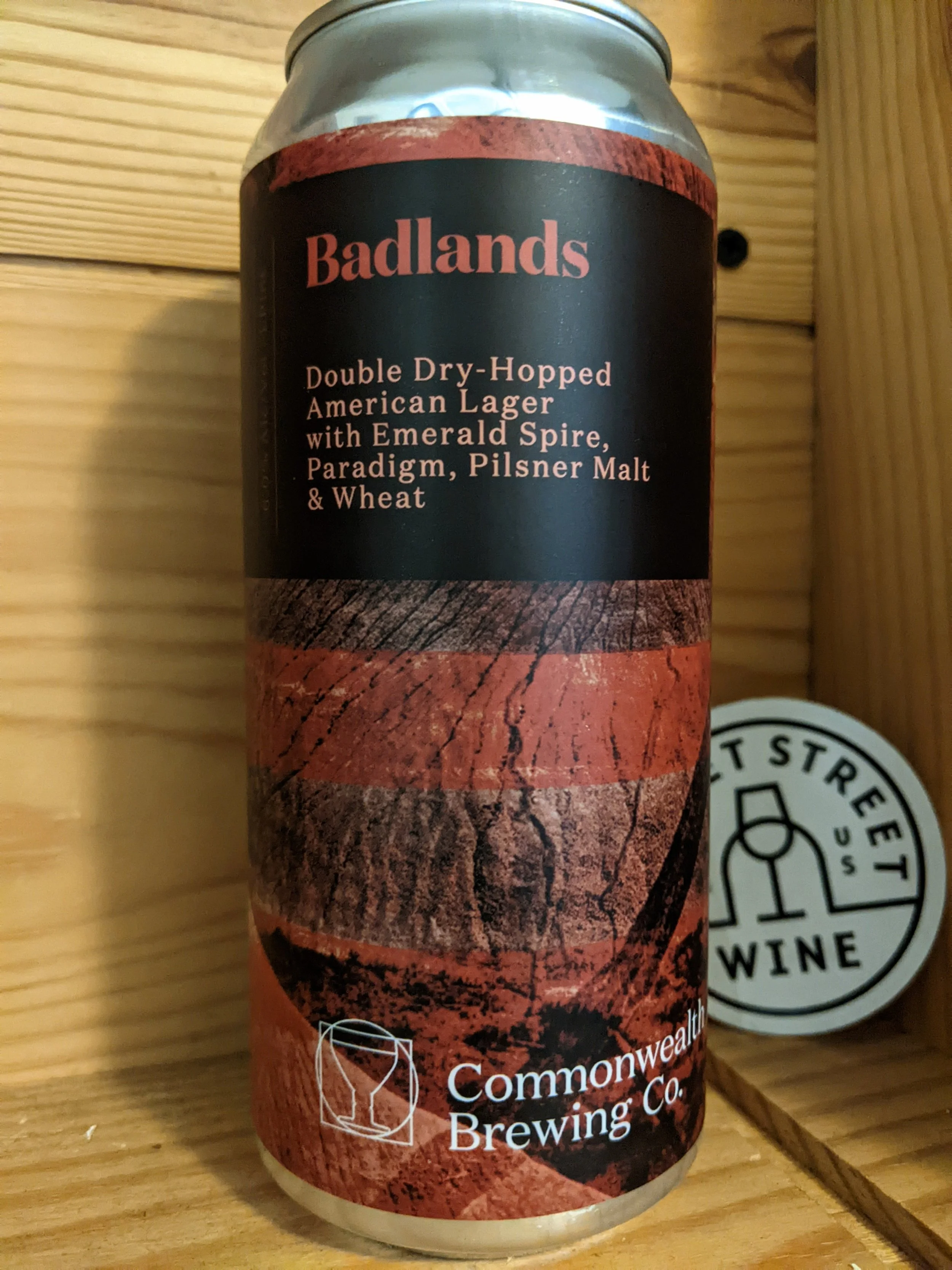 The BadLands Lager from Virginia Beach’s Commonwealth Brewing Company is made with Pilsner malt and wheat malt. However, to double down on its aroma it’s double dry-hopped with two new hops — Emerald Spire and Paradigm.