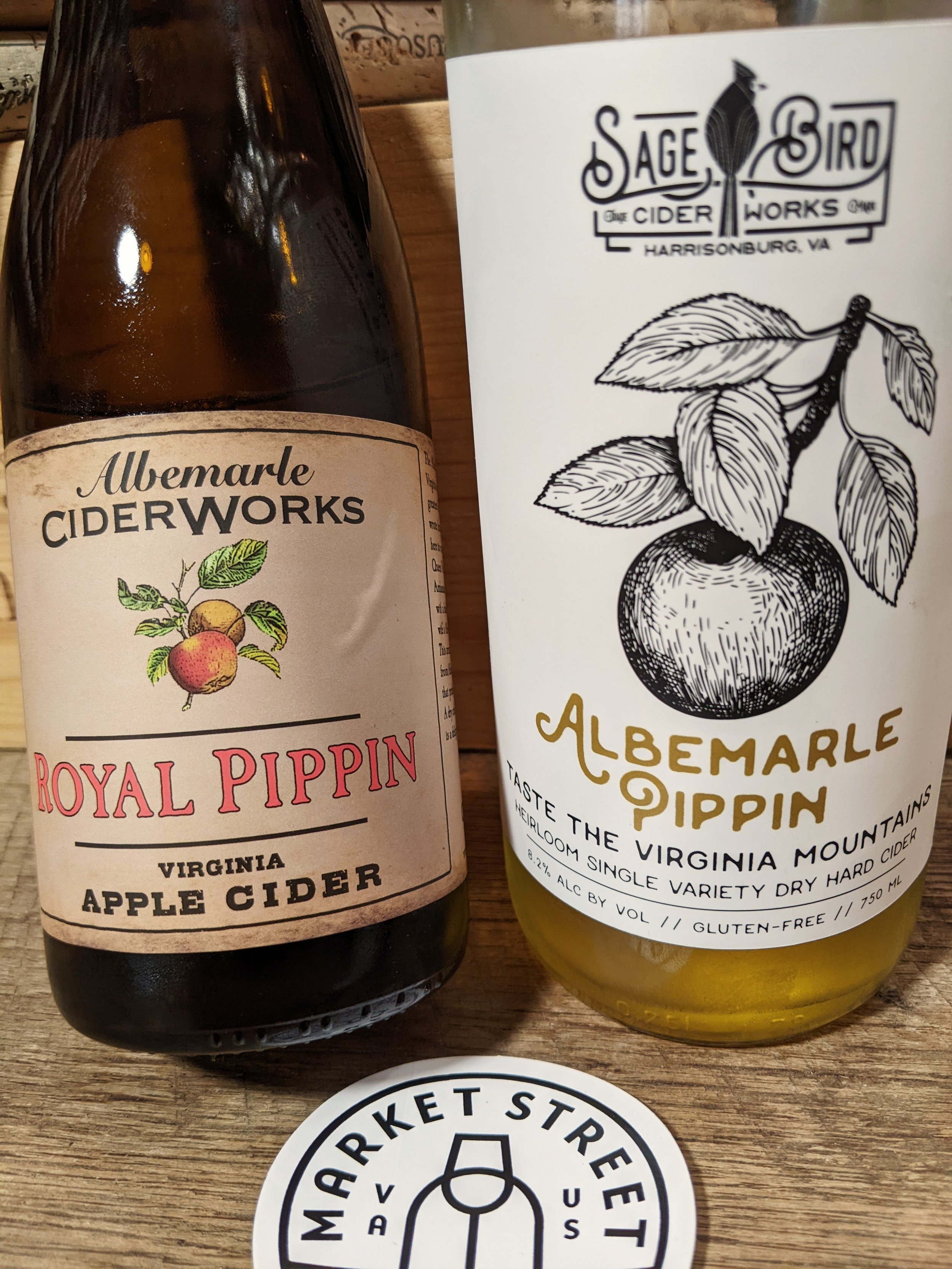 We have two single varietal Albemarle Pippin ciders in our shop right now. This simultaneity gives you the opportunity to check out VA’s most apt apple through the vision of two different cidermakers.