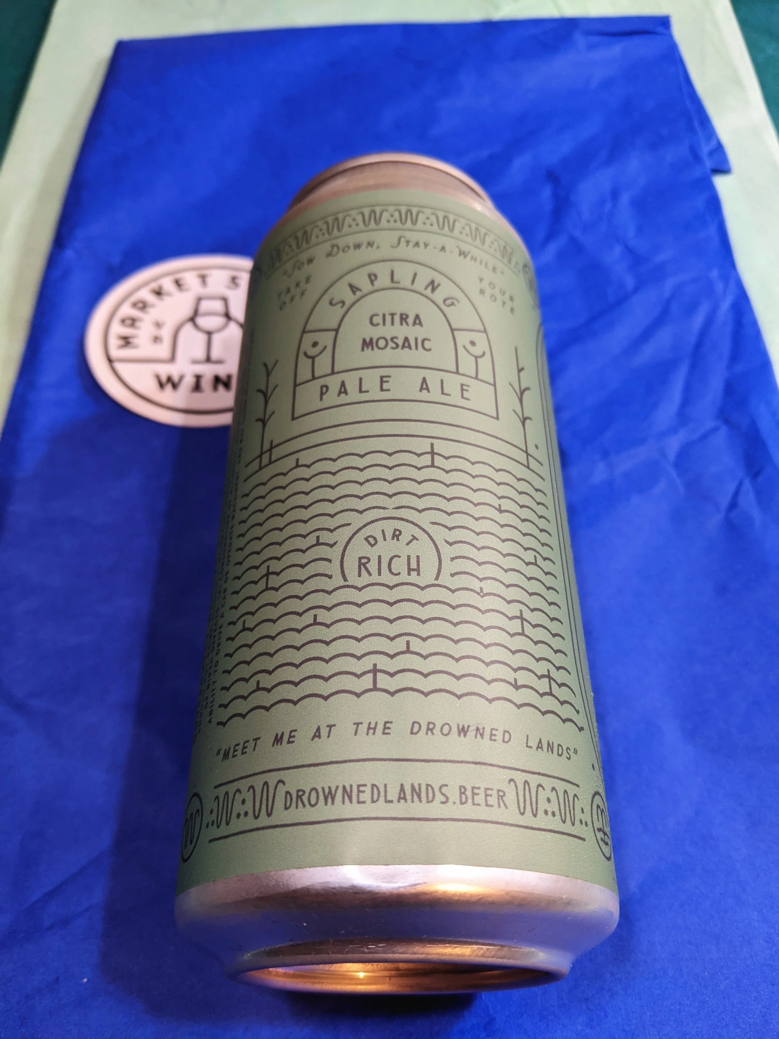 Drowned Lands uses yeast captured from their property, their local mineral-rich water, and ingredients from local farmers. For the Sapling, they start with 2-Row Barley and white wheat, plus some oats (maybe to promote more haze). They then ferment the grains in temperature controlled foeders. They then bitter and dry-hop with mostly Mosaic hops.
