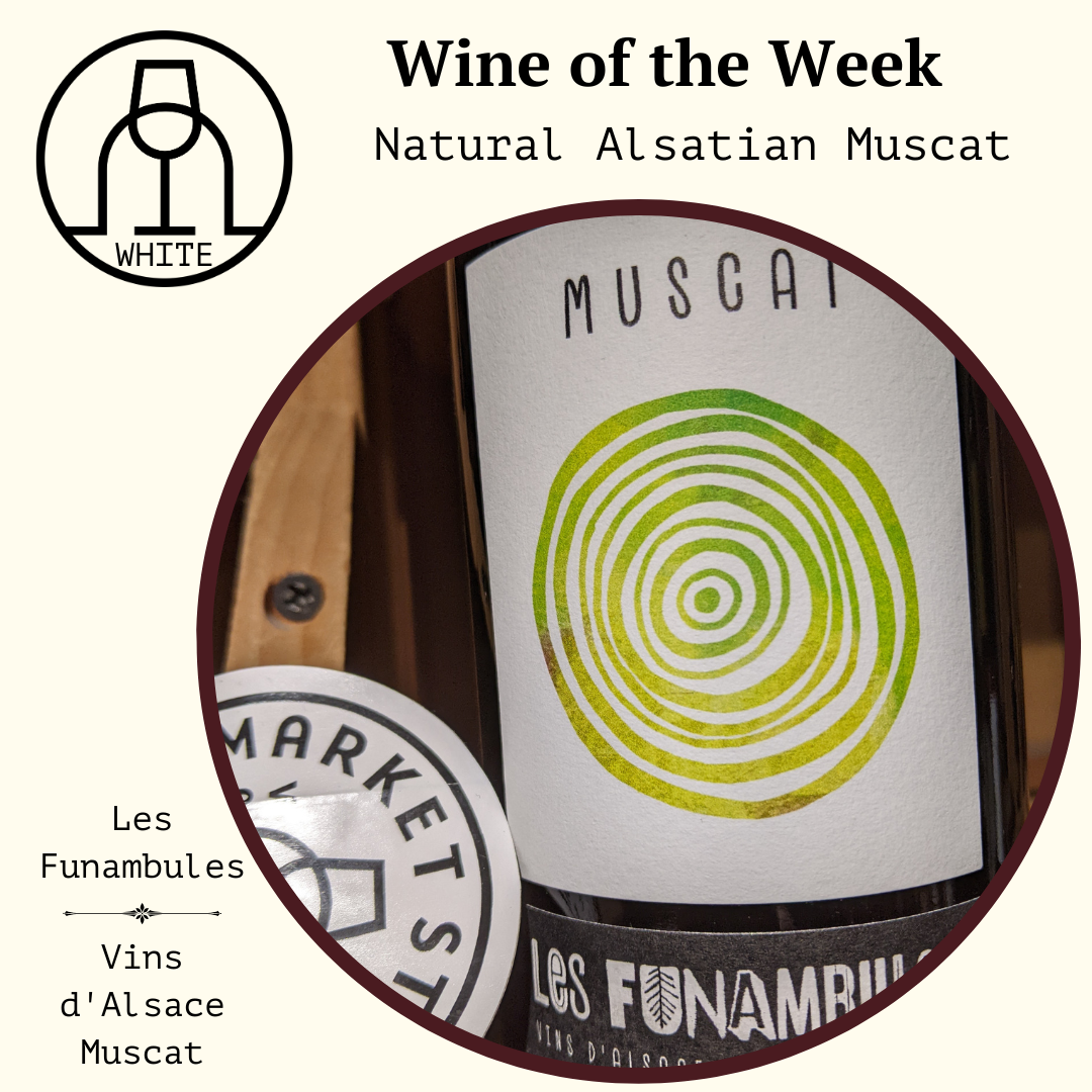 Les Funambules’ Muscat is a lovely, refined, citrusy white. It’s got a zippy, light acidic brininess while still keeping the clean pure “mountain water” freshness that you want in an Alsatian white. Like so many natural wines, it might not be for everyone … but it sure is for us!