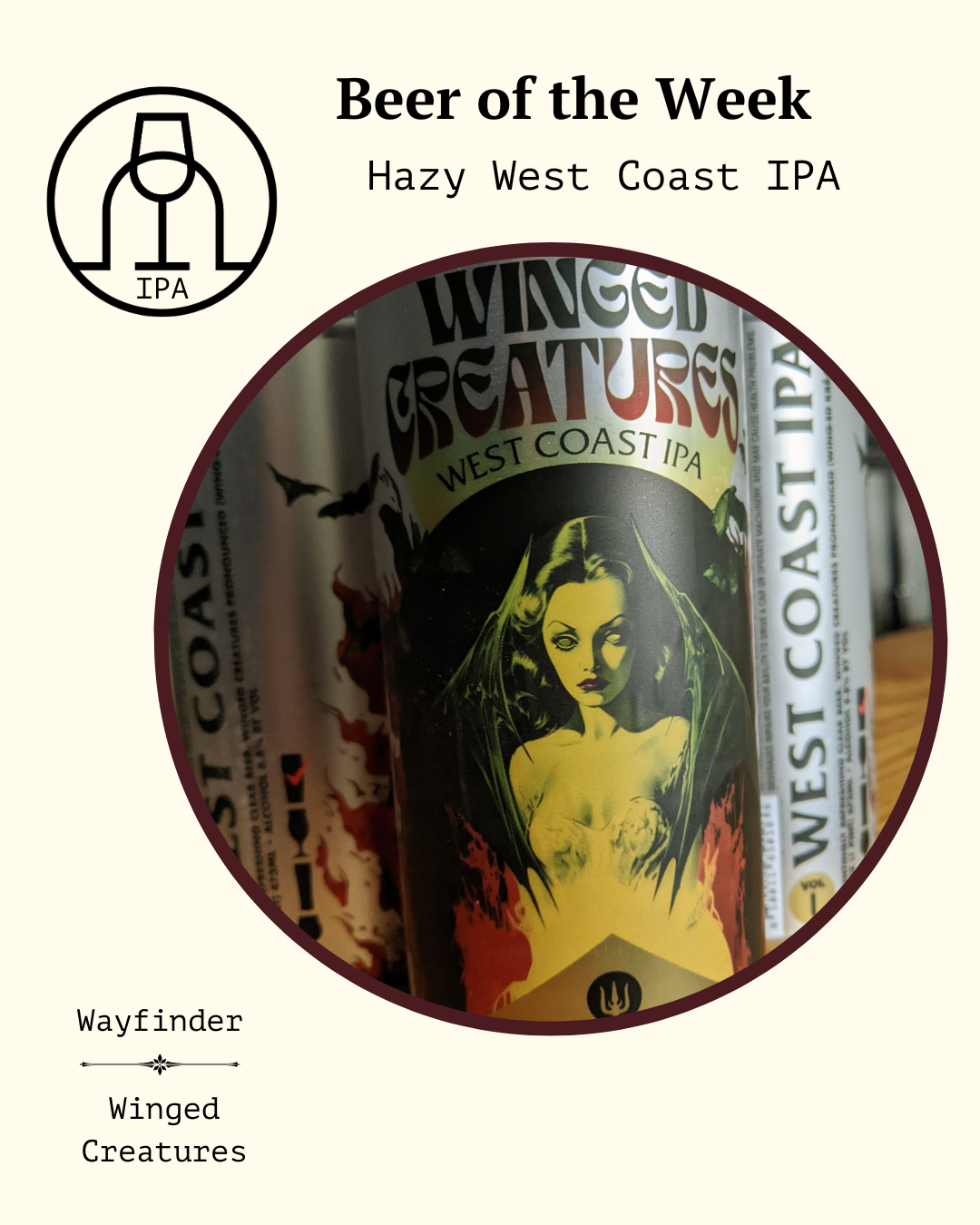 Portland, OR’s Wayfinder Beer makes this unfiltered IPA with Citra, Simcoe, and Mosaic hops.