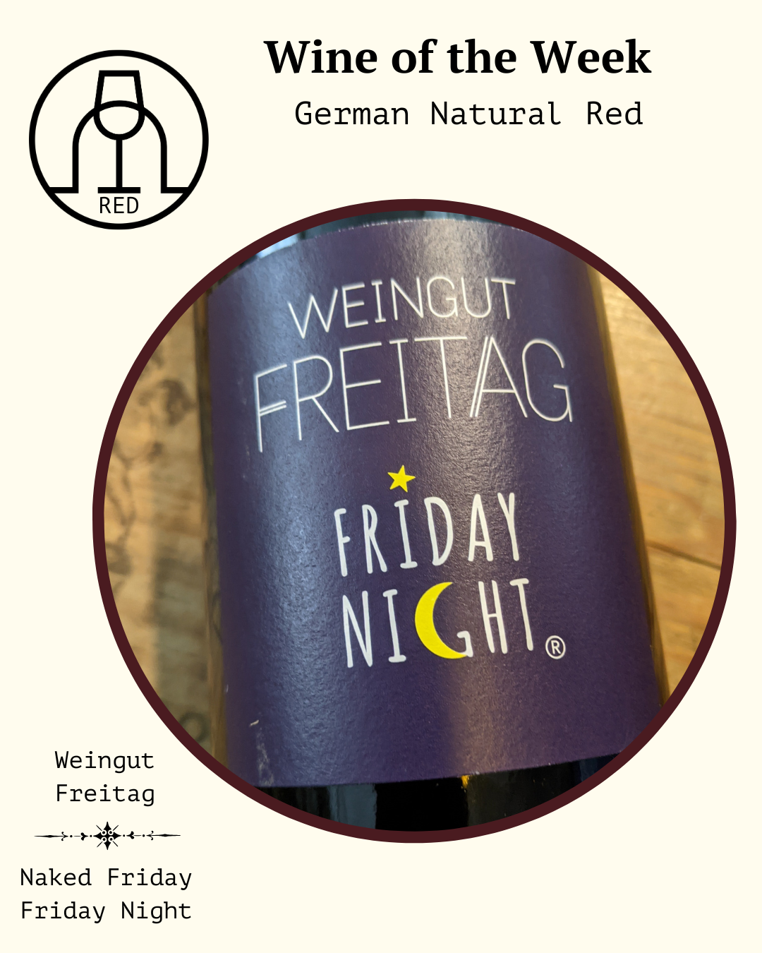 Weingut Freitag populates their Naked Friday line with German natural wines made from biodynamic grapes, farmed from just 2.5 hectares of vineyards. For this natural red, they use the relatively new German grape, Dornfelder (created just in 1956), which they carbonically macerate for seven days before pressing the juice into wooden barrels, where it continues to ferment. They then bottle the wine unfiltered and unfined with little or no sulfur.