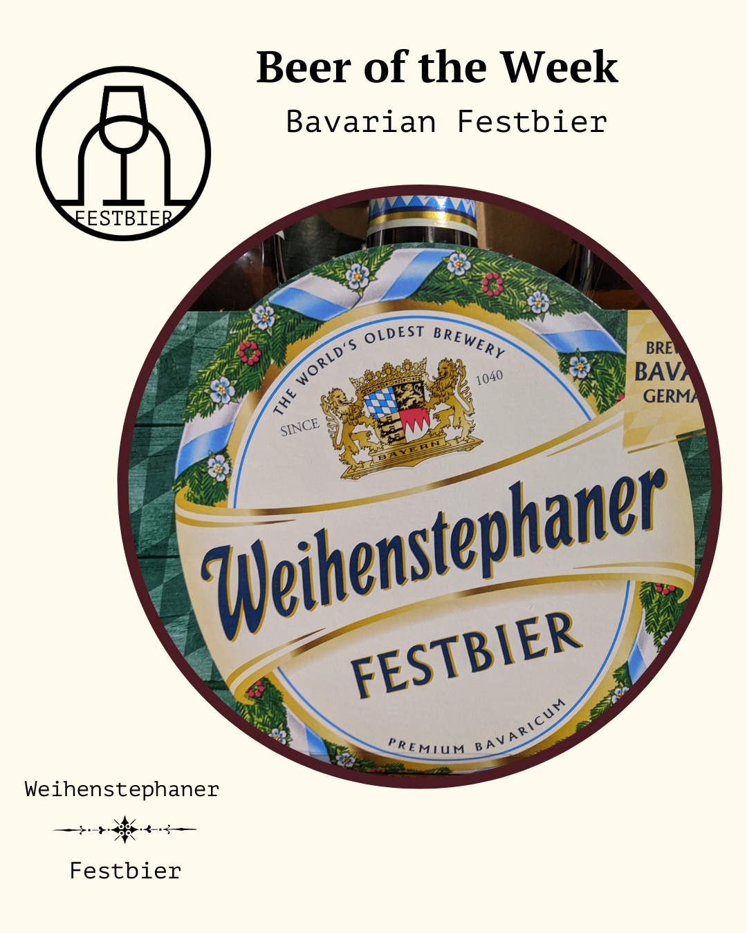 Though Märzen Lagers are the classic beer style of Oktoberfest, years ago breweries stated brewing a lighter, golden option — the Festbier. This is the version from classic Bavarian brewery Weihenstephan State Brewery, their annual offering for Oktoberfest … which is going on this week!
